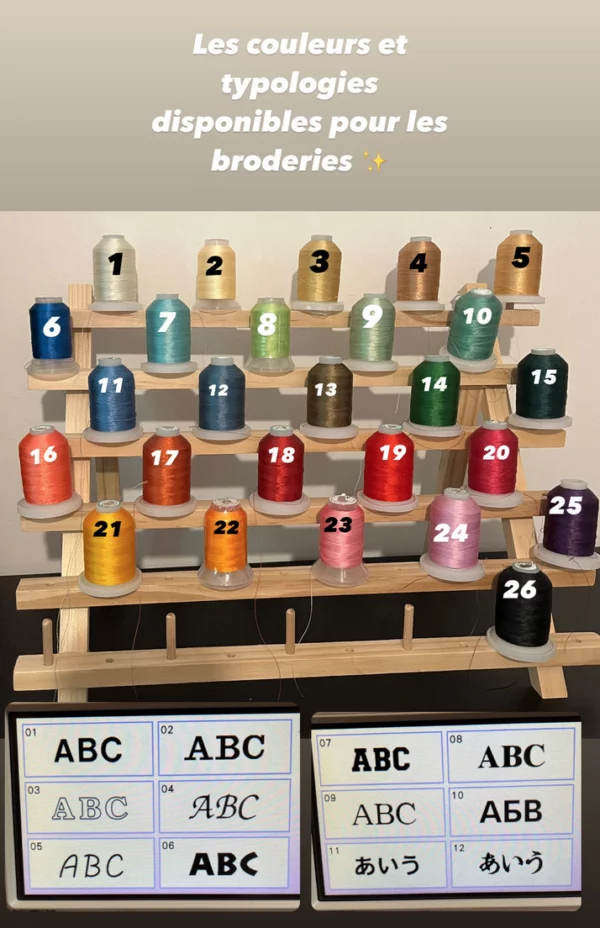 Les trousses sont personnalisables, il est donc possible d’ajouter une broderie gratuitement. Maximum 4/5 mots. Notez le numéro de police et le numéro de couleur de fil.